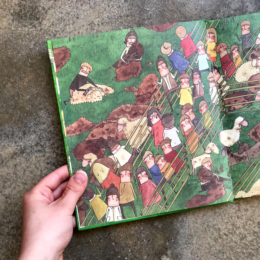 Illustrated children's book about wool spinning in Madeira, where a community of women keep this important traditional practice alive using artisanal techniques passed down through generations. The story follows a wool spinner who begins by choosing the sheep's fleece after the annual shearing. At home, the fleece is washed and the wool is carded, finally followed by the spinning that turns the wool to yarn.