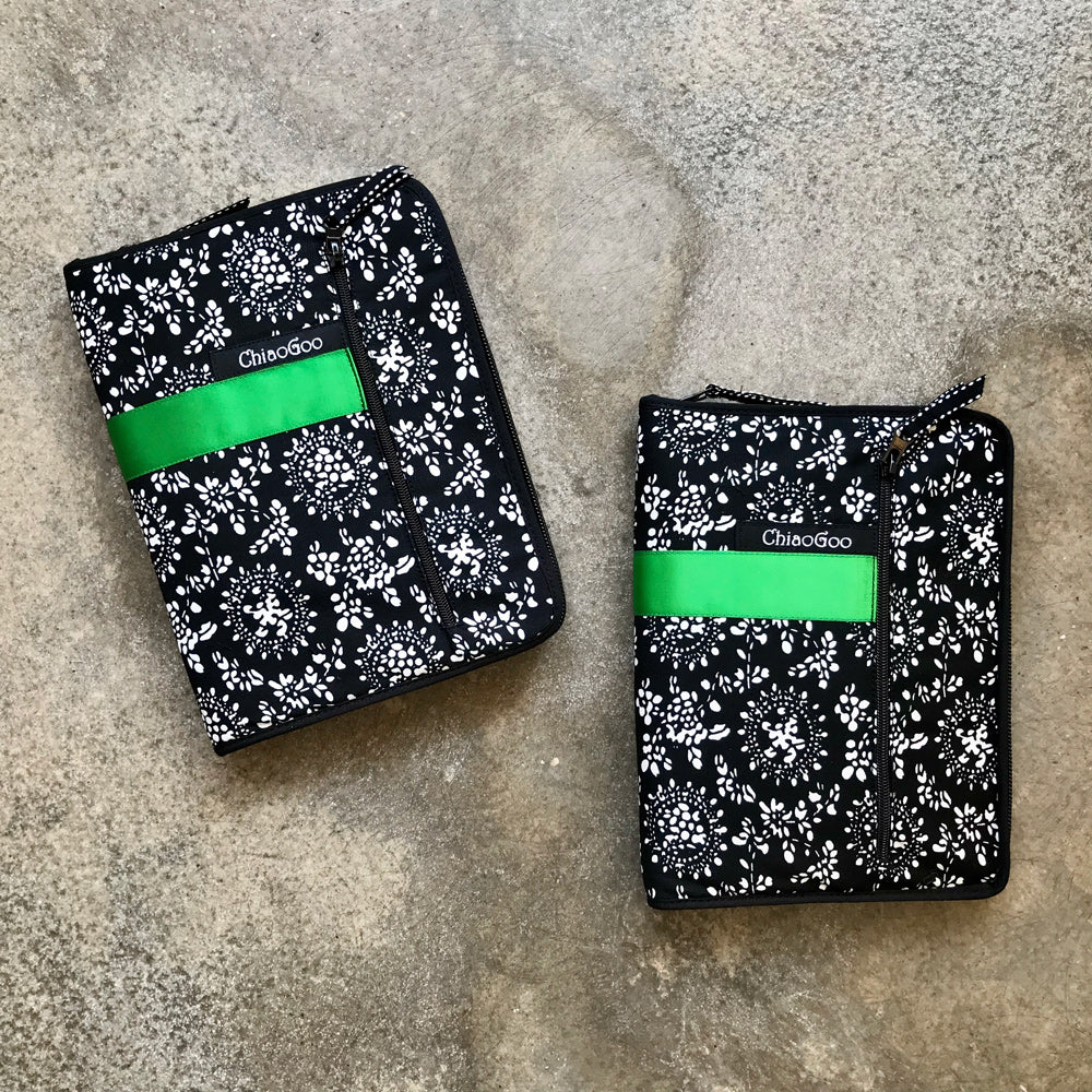 Set of ChiaoGoo SPIN interchangeable needles include bamboo tips and three clear, nylon cable lengths. SPIN nylon cables allow the tips to swivel freely. Also included with each set are easy-to-read, coded cable connectors, end stoppers, T-shaped tightening keys, stitch markers, a needle gauge and compact, zipper-enclosed, fabric case. ChiaoGoo SPIN & TWIST tips, cables and accessories are all switchable.