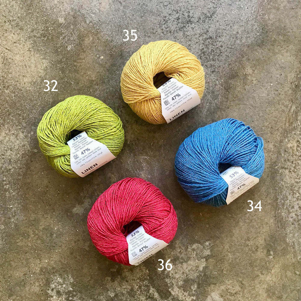 Cotton and linen blend yarn, manufactured in Spain by Katia. Available in a variety of vibrant colours for spring and summer garments.