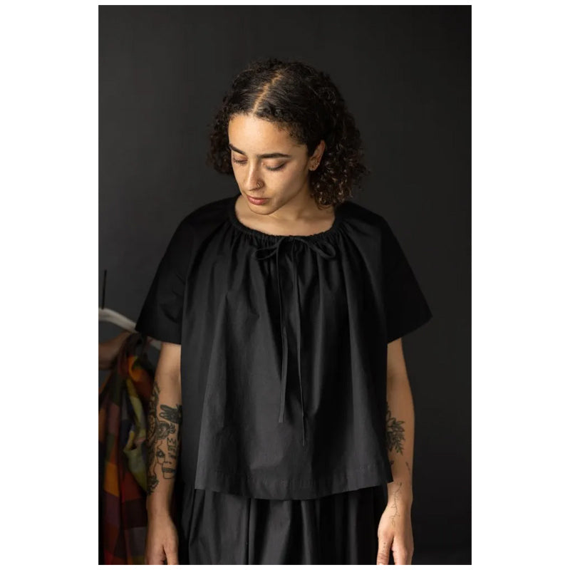 Merchant & Mills sewing pattern. A simple t-shaped dress or top with a gathered drawstring neckline that can be adjusted to sit at your desired height. Make it sleeveless or with sleeves, structured and architectural in poplin or soft and relaxed in linen.