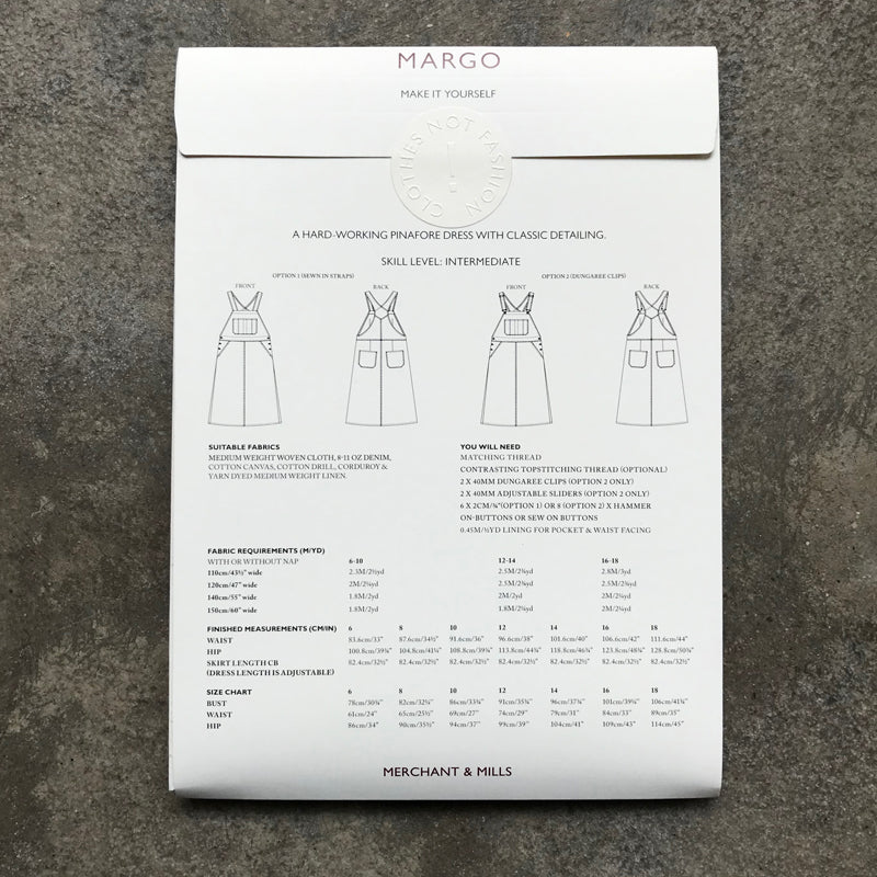 Merchant & Mills sewing pattern. A hard working pinafore dress, featuring classic detailing and topstitching. Choose to make it with dungaree clips or sewn in straps.