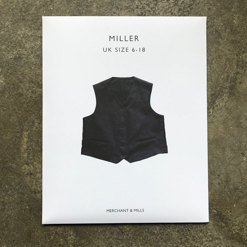 Merchant & Mills sewing pattern. The Miller is a softly structured women's waistcoat with a boxy fit, two welt pockets and a simple stitched belt at the back. Layer up in the winter or wear on its own in the summer in a tumbled linen.