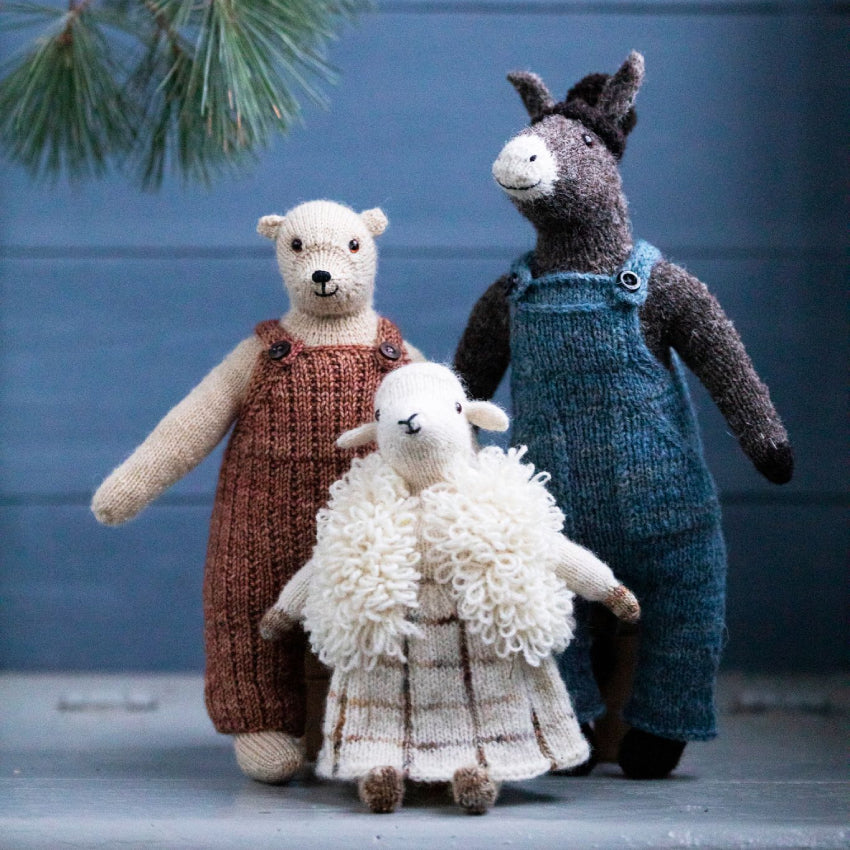 The animals are worked almost entirely in the round. You can choose your favourite method for working small circumferences: the instructions are written to work with any set-up.