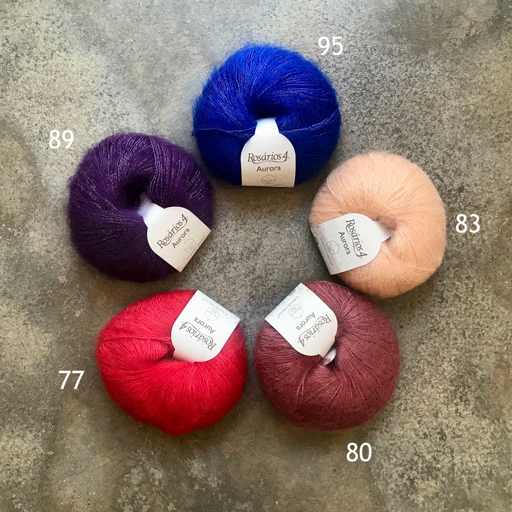 Mohair and silk blend lace yarn by Rosários 4. It is ideal for working together with other yarns to knit softer sweaters, scarves and accessories.