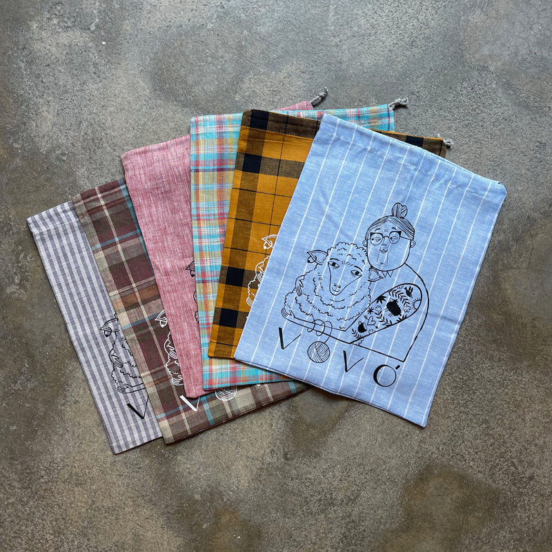 A project bag featuring the original illustration by Joana Rosa Bragança for our yarn Vovó. Entirely made in Portugal using top-quality shirting fabrics. If you order more than one bag we will send you different bags (subject to availability). Each batch of bags uses different fabrics and the one you receive may not be pictured here but we promise they are all beautiful.