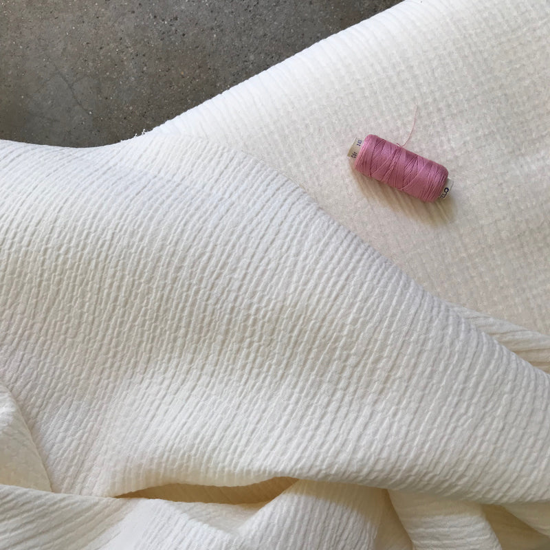 High quality Portuguese double gauze fabric, in white. Lightweight fabric ideal for baby clothing and summer clothes such as light shirts and dresses.