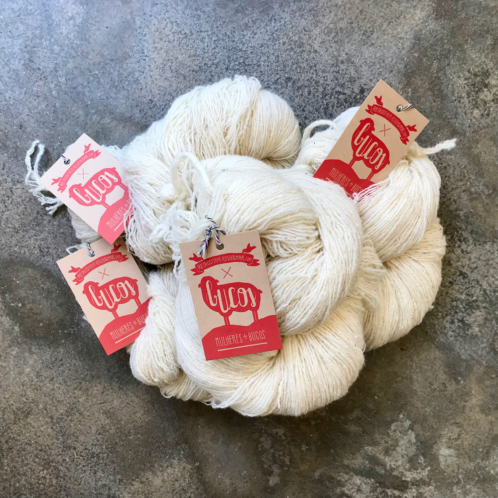 Fio para tricot e tecelagem produzido artesanalmente em Bucos (Minho), maioritariamente a partir de lã de ovelhas da raça Bordaleira do Minho. Integralmente processado à mão e fiado em fuso manual. Meadas de peso variável.