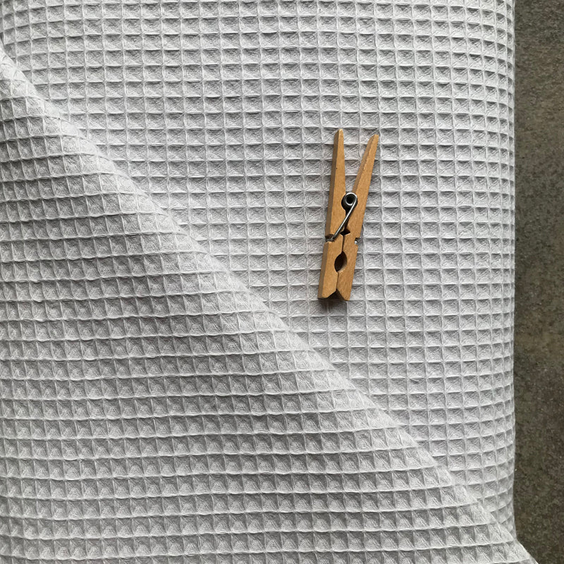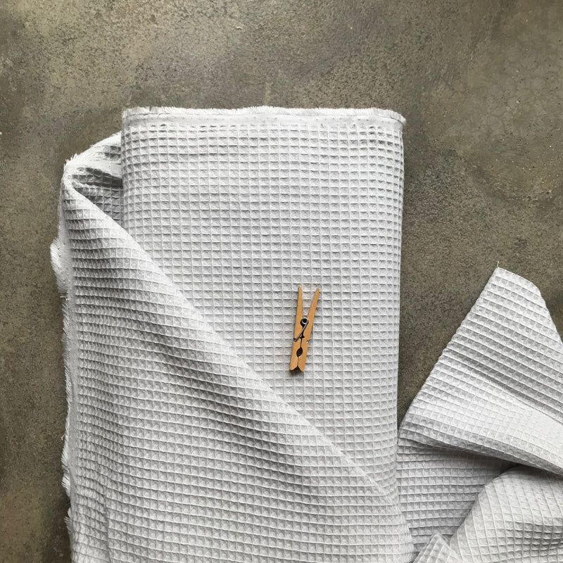 Tecido 100% algodão com textura em favo de cor cinza. Tecido leve, ideal para roupa de verão, roupa de criança e têxteis para a casa.
