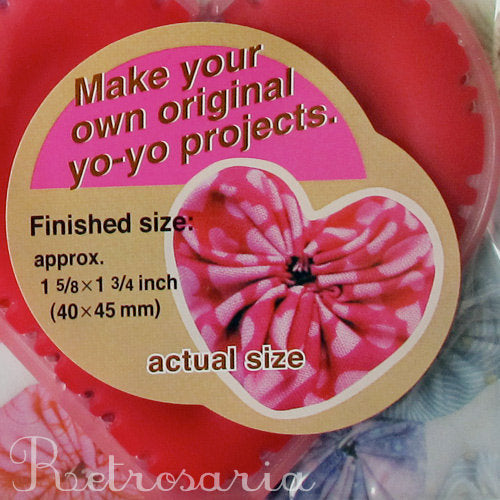 Moldes para a realização de rosetas (figos, fuxicos ou yo-yos) em tecido da marca japonesa CLOVER. Inclui instruções em várias línguas.