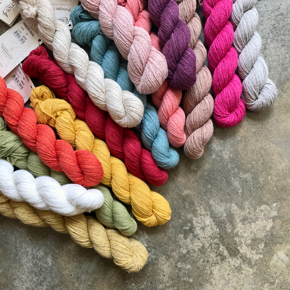 Príncipe Real da Rosários 4, ideal para a estação de Primavera-Verão. É um fio chainette inteiramente composto por fibras naturais e muito suave graças à presença de uma percentagem de seda. Indicado para vestuário de adulto e criança.