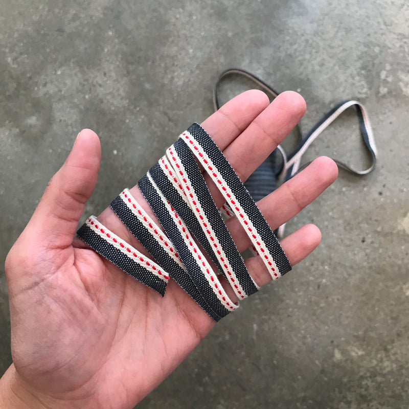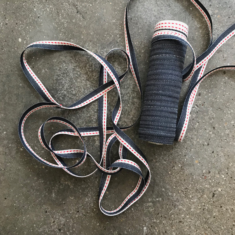 Fita em tafetá com 10mm de largura e bonitos detalhes. Para projectos de costura e detalhes decorativos.