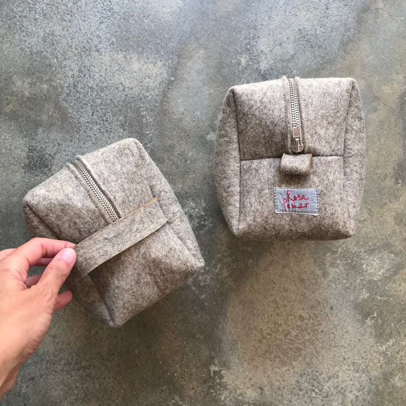 Versatile travel bag in wool felt with metal zip. This pouch has plenty of space and can be used to carry a variety of small items such as toiletries, knitting or sewing accessories, stationery essentials, and much more. It is also easy to carry in a medium-size handbag or backpack, to use as a purse organizer and to keep any essential belongings secure. Ideal for both travel and day-to-day use.